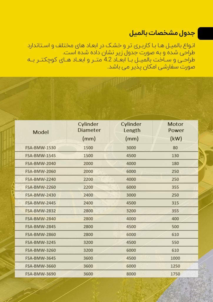 مشخصات دستگاه بالمیل